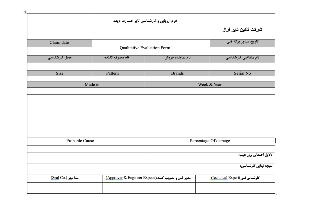 فرم ارزیابی و کارشناسی تایر خسارتی